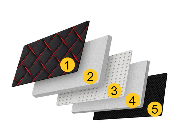Unsere Fußmatten sind aus hochwertigen Materialien gefertigt und bieten eine optimale Kombination aus Komfort, Haltbarkeit und Umweltfreundlichkeit. Die oberste Schicht ist aus umweltfreundlichem Kunstleder gefertigt. Darunter befindet sich weicher Memory-Schaum für maximalen Komfort. Die Strapazierfähigkeit wird durch Polypropylenharz gewährleistet, während ein weicher und langlebiger Schwamm zusätzlichen Schutz bietet.