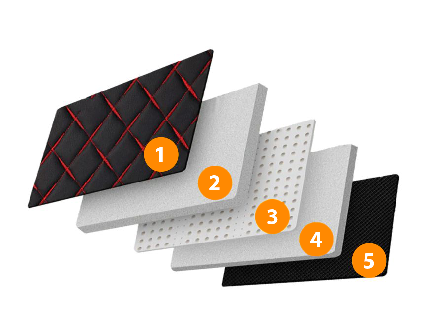 Unsere Matten bestehen aus hochwertigem, umweltfreundlichem Kunstleder, weichem Memory-Schaum für Komfort, langlebigem Polypropylenharz, schützendem Schwamm sowie einer rutschfesten Unterseite für sicheren Halt.